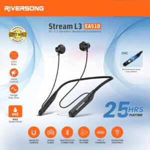 Be the first to review “Riversong EA510 Steam L3 Wireless In Ear Neckband Black”